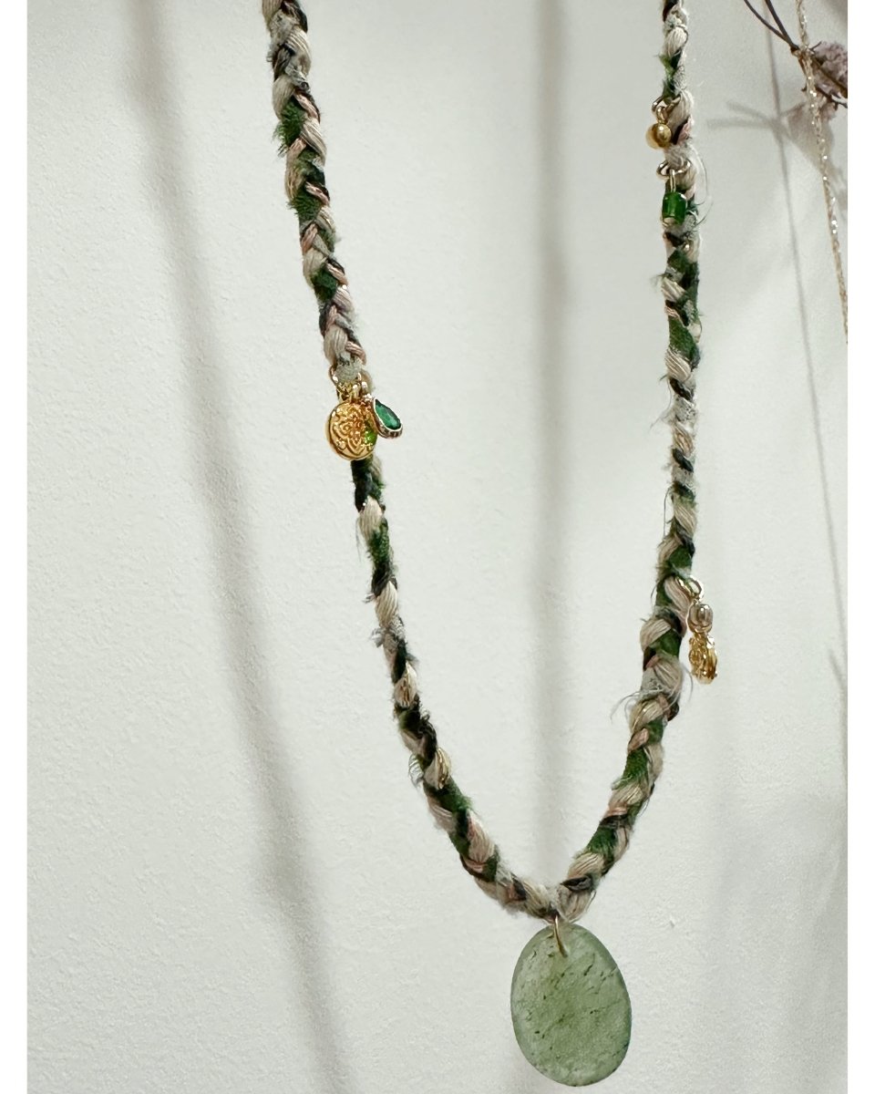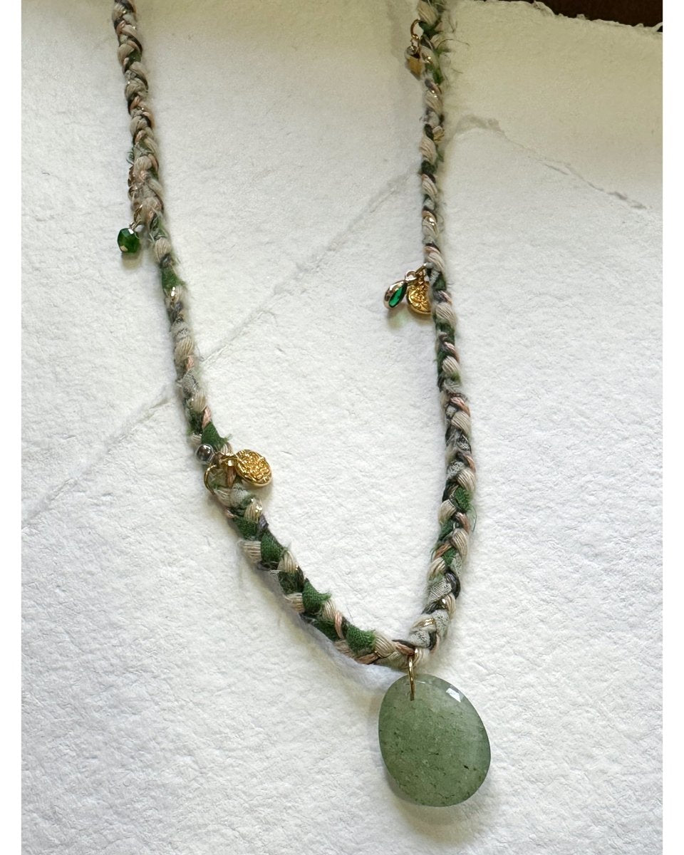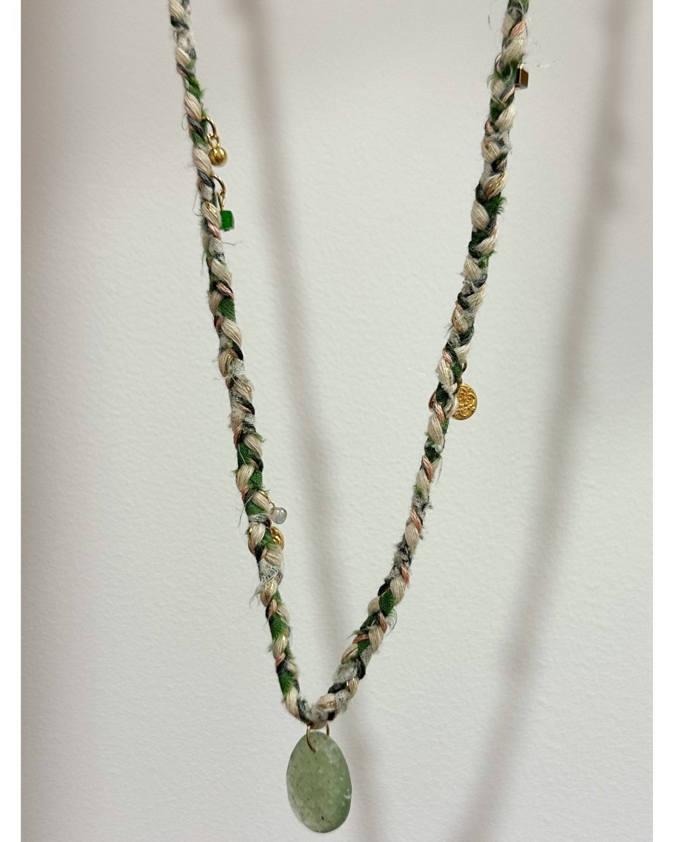 Collier tressé agrémenté de pampilles & pendentif en pierre fine.